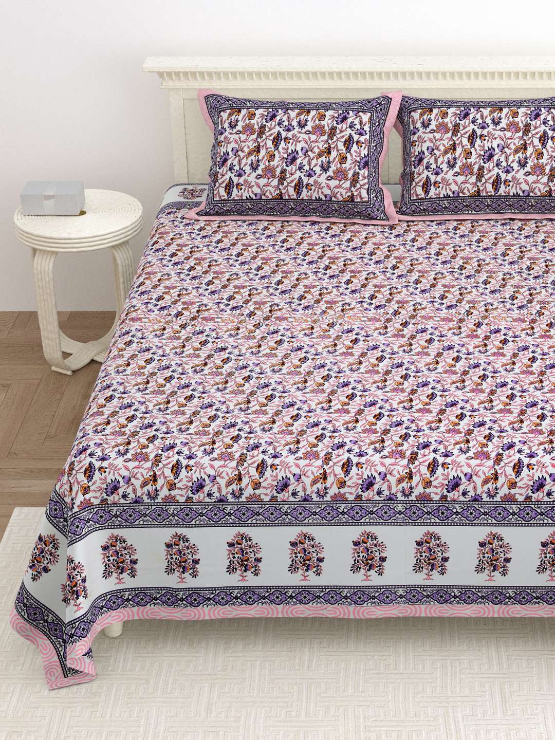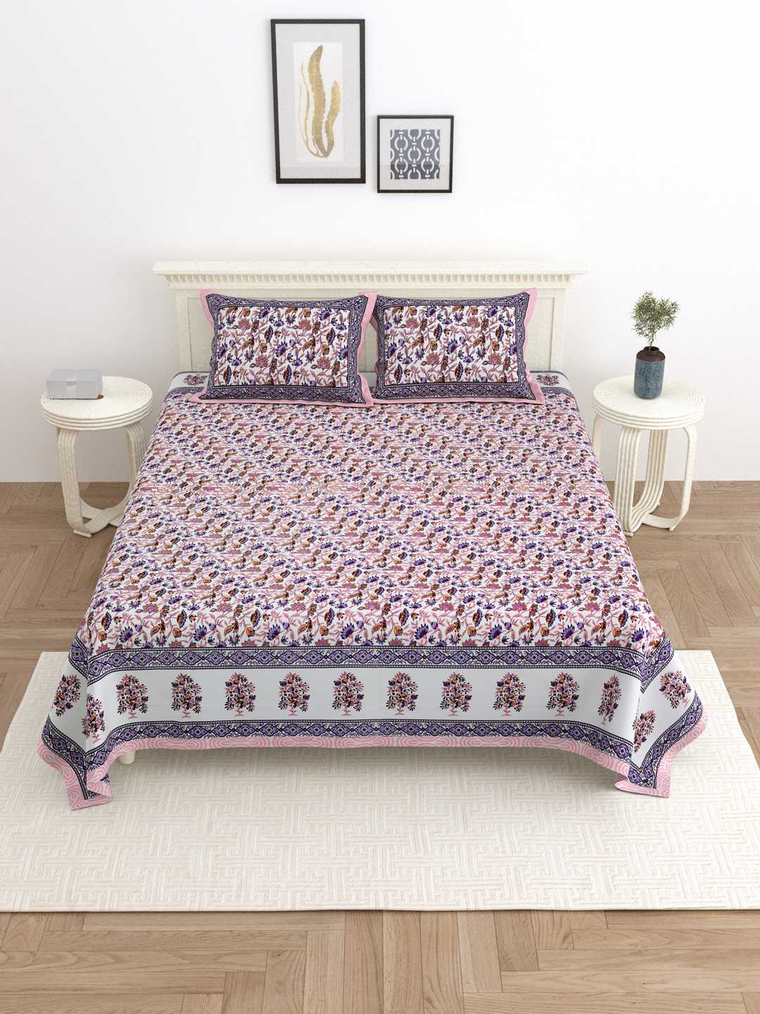 100% Pure Cotton Traditional Printed Bedsheet for Double Bed King Size Bedsheet with 2 Pillow Covers