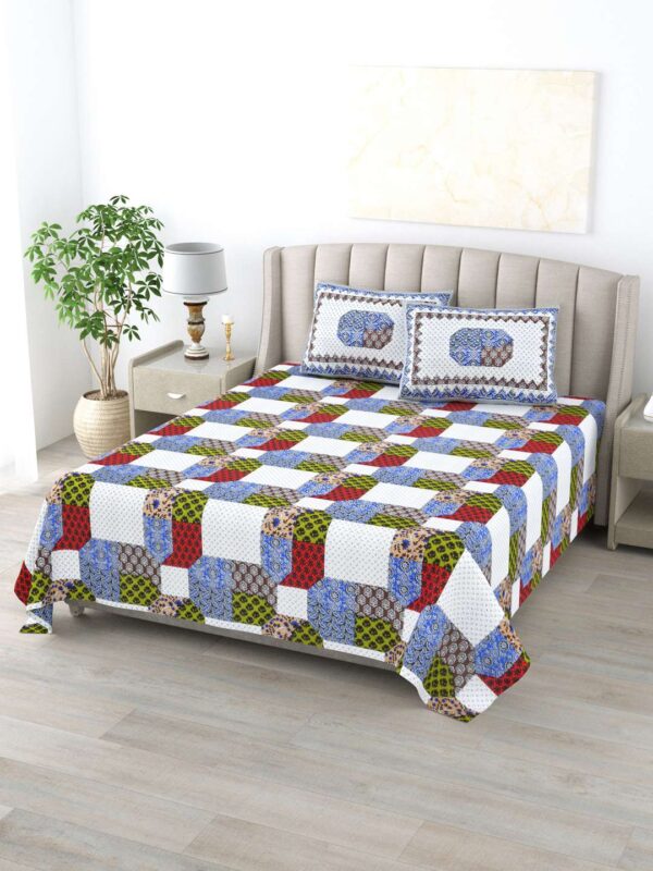 100% Pure Cotton Traditional Printed Bedsheet for Double Bed King Size Bedsheet with 2 Pillow Covers